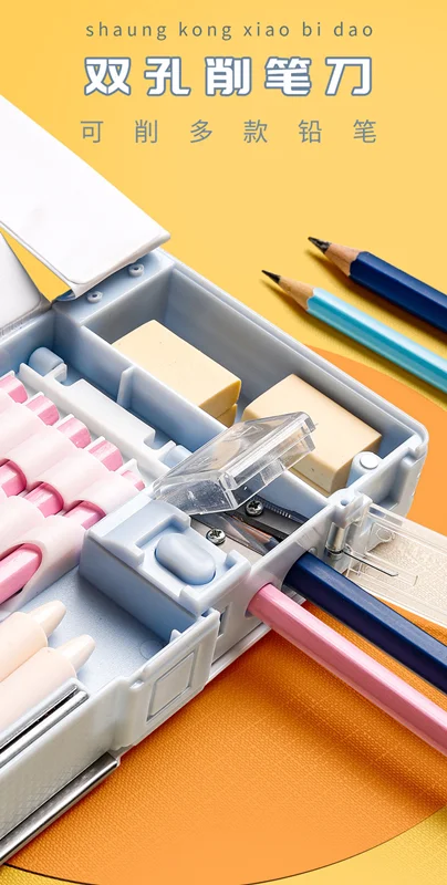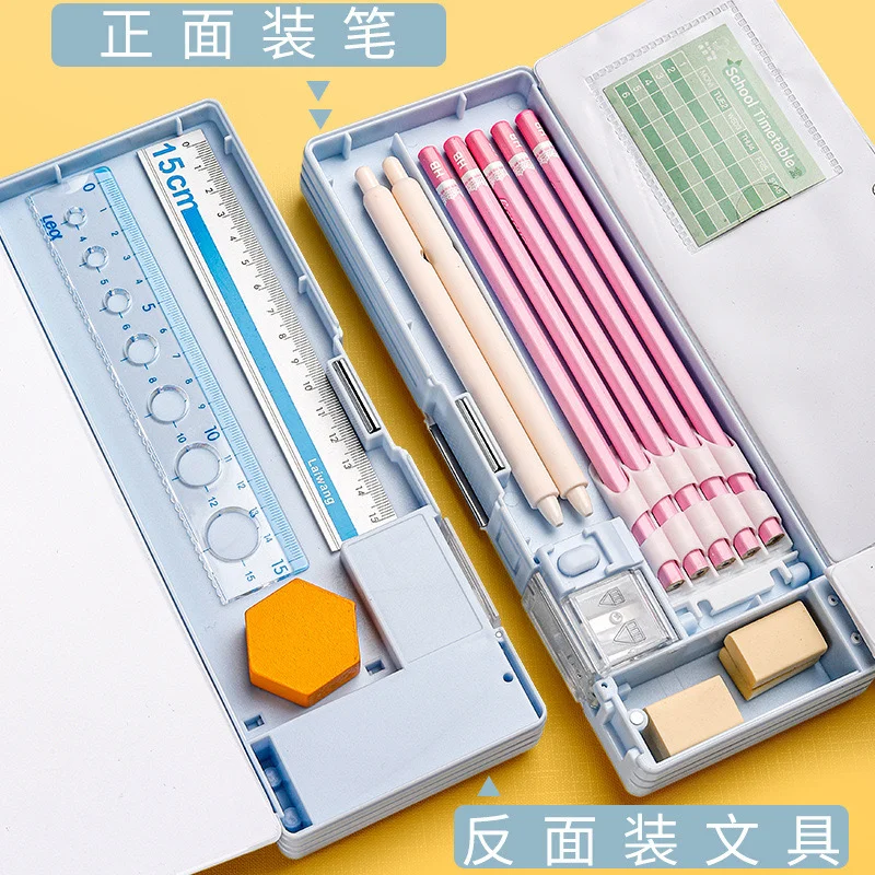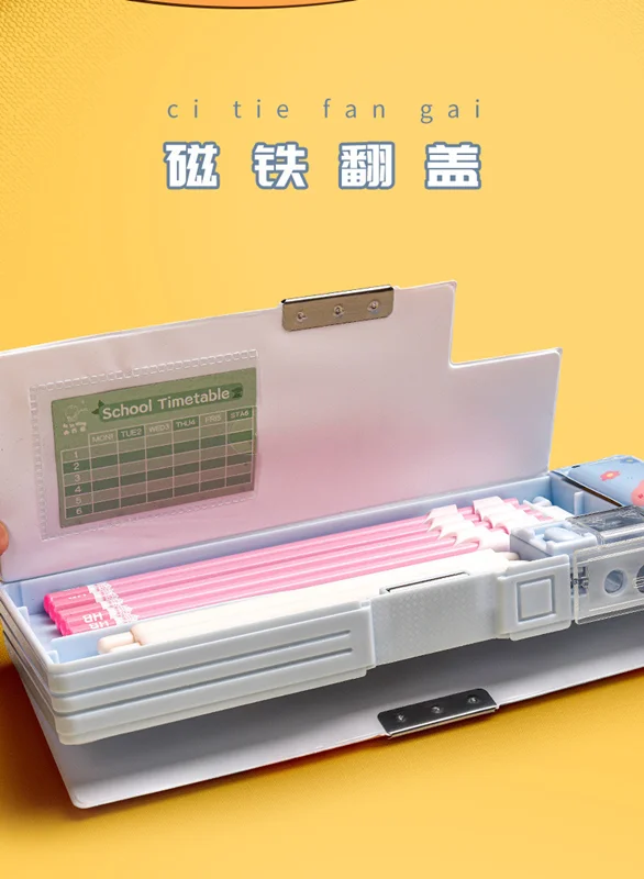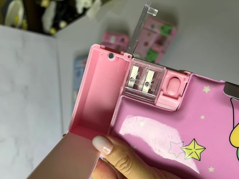دو طرف این جامدادی با درب مگنتی ، باز میشود و جا دارد. این حامدادی تراش نیز دارد.